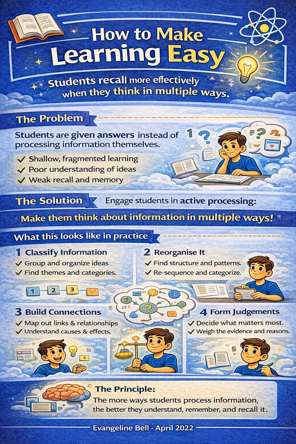 The purpose of this blog is to focus on the processing part of learning – that which we ask students to do in order to make sense of new input. The argument being presented here is that students will be better able to make sense of new information if they are asked to process information in multiple ways: to look at the same information through different lenses or from different angles. They are also likely to retain more and be more able to recall more when we turn our attention to the recalling part of the process.