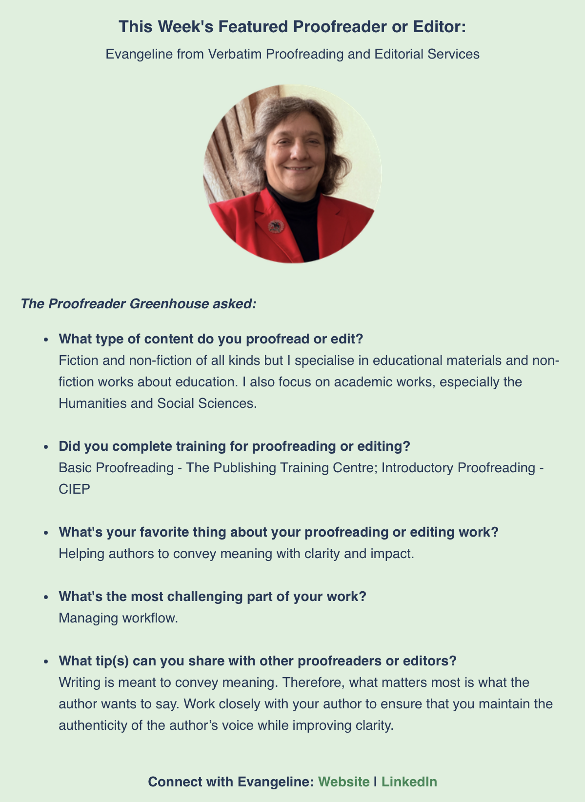 Feature in The Leaflet - newsletter from The Proofreader Greenhouse - 7 February 2026